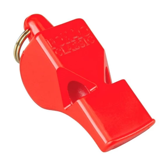Silbato de plástico sin bola de color rojo Fox 40, el preferido de árbitros y entrenadores de todo el mundo.